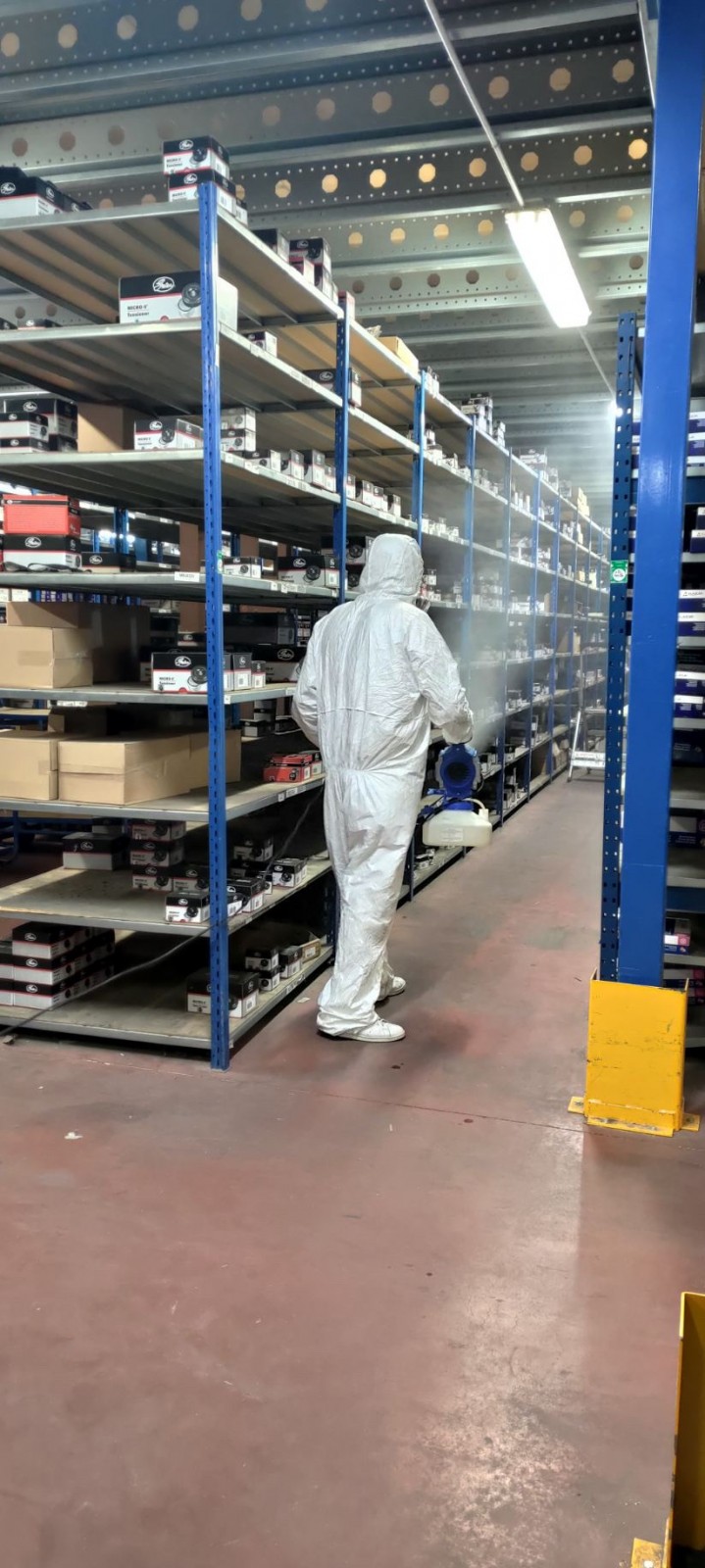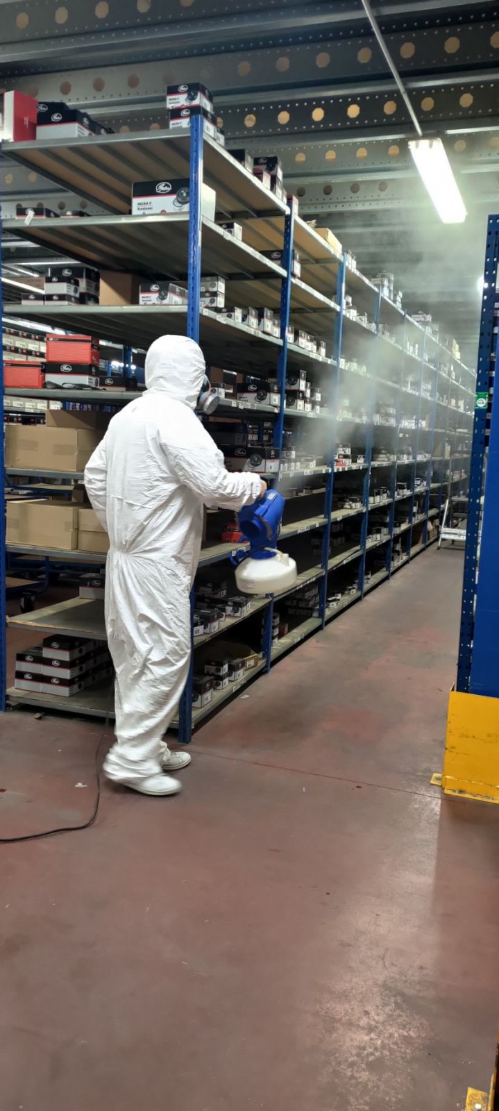 Dernièrement, nous avons désinfecté par nébulisation d’un dépôt de 2500 m2 à Marseille suite à un cas testé positif au Covid, au sein de la société.